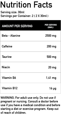 1 shot (60ml) 20–30 minuta pre treninga.