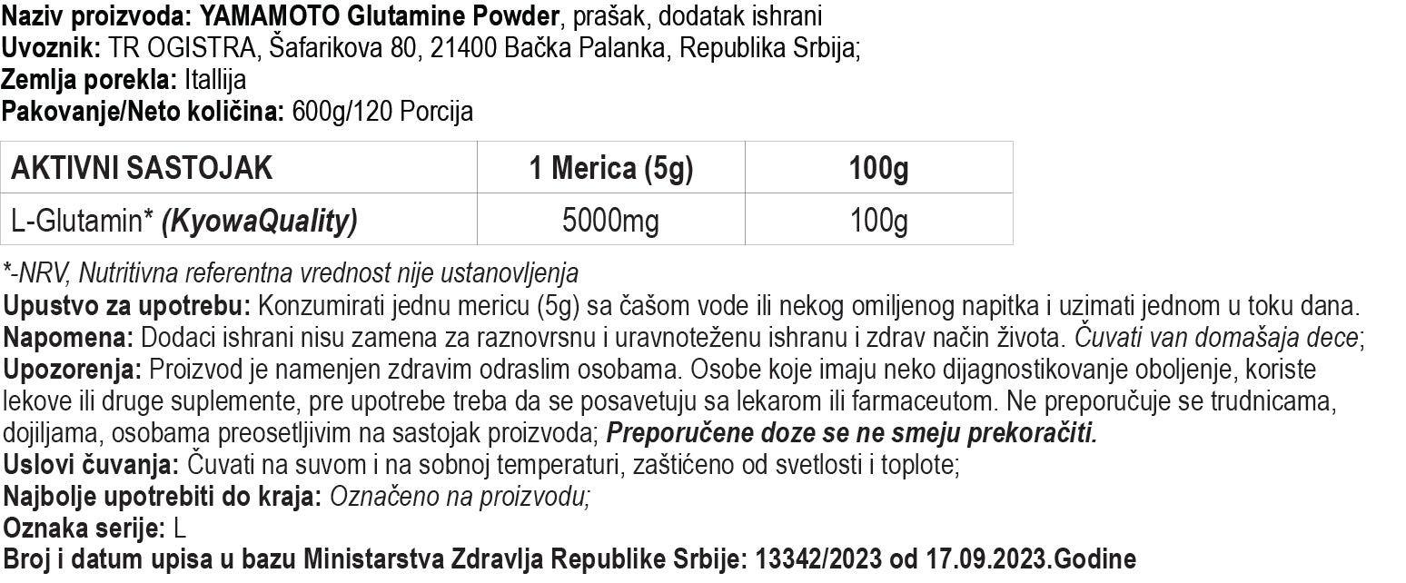 Yamamoto Glutamine Powder je osnovni suplement za regeneraciju i jačanje imuniteta. Lako se